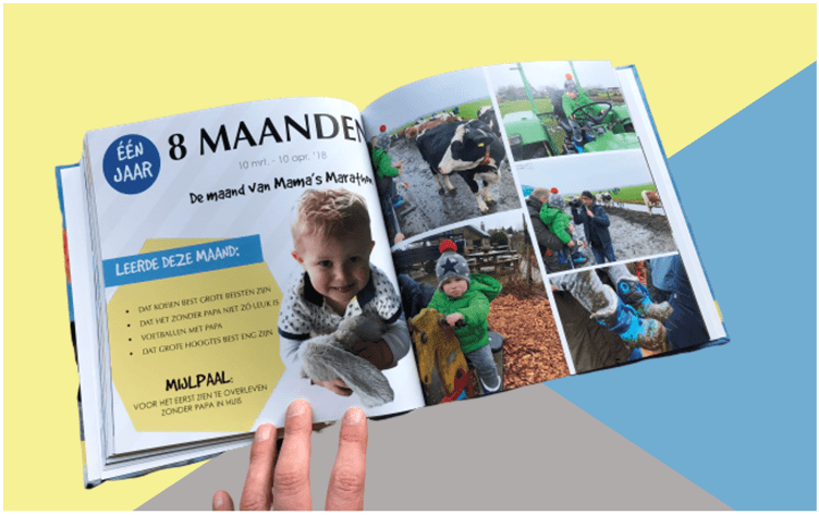 Het eerste boek bevat vooral foto’s van Jelle thuis en van mij in de periode dat ik zwanger van hem was, het tweede jaar heeft een stuk meer avontuurlijke foto’s. Maar weet je, meer avonturen betekent ook dat ik veel drukker ben, daarom heb ik dit 2e jaarboek iets eenvoudiger gehouden. Het koste me alsnog (te)veel tijd, dus ik vermoed dat het 3e jaarboek nog wat eenvoudiger wordt. Wel probeer ik voor Mees precies hetzelfde format aan te houden, dat scheelt hopelijk tijd.
