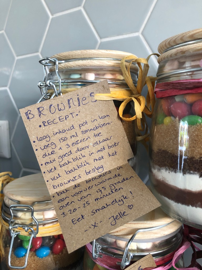 Versier de pot daarna met een vrolijk touwtje met daarop onderstaand recept. (niet vergeten!)