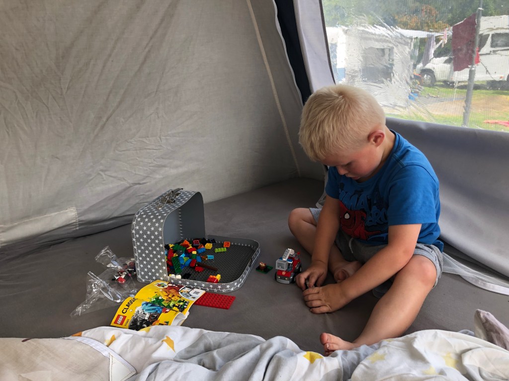 De vakantie was in aantocht, wat bij ons zowel in de zomer als in de winter regelmatig neer komt op veel uren in de auto zitten. Toen ikzelf klein was, kregen wij onderweg elke zoveel uur een klein cadeautje, waar ik ook voor Jelle vorig jaar mee begonnen ben. Dit jaar kwam ik – wederom op Pinterest- een ander leuk idee tegen: een koffertje met Lego. Ideaal voor in de auto, in de vouwwagen, om het wachten bij een restaurant te overbruggen, etcetera.
