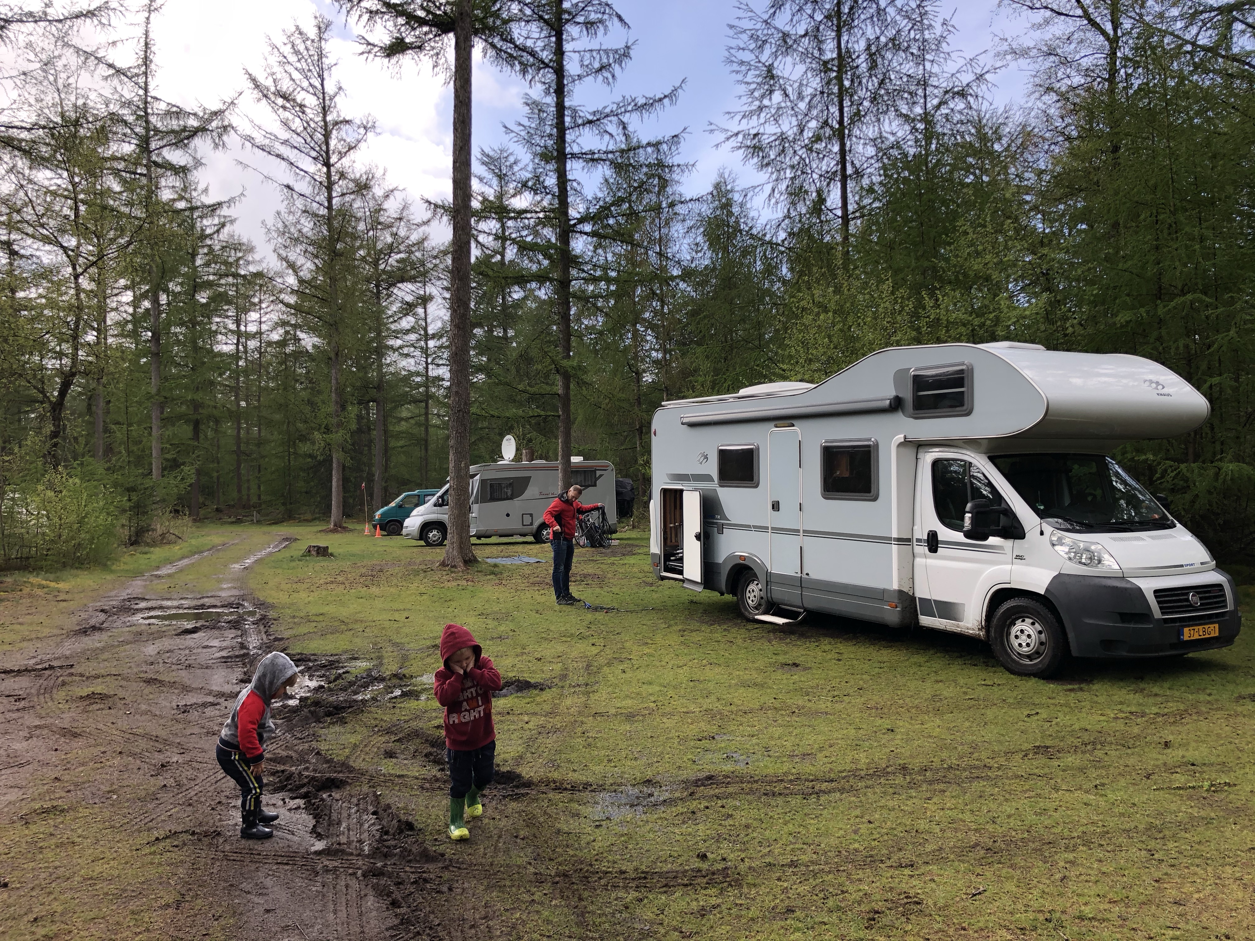 Het weer was niet optimaal, maar dat was geen probleem met een camper. Het was behaaglijk warm en droog. We hadden een ruime douchecabine om natte kleren op te hangen en zeker ook de vele zakken vuile was uit het zicht te stallen. Er zat een uitschuifbare luifel aan de camper, maar die hebben we nauwelijks gebruikt, omdat het eigenlijk toch net te koud was om lekker buiten te zitten. Daarnaast waren we vooral veel op pad en hadden we daar niet eens tijd voor. Terwijl de andere (voor)tenten naast ons soms haast omver geblazen werden door de harde regen en wind, hadden wij niets te vrezen.