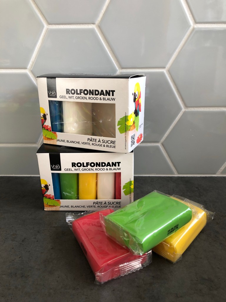 - 200 gram rolfondant per kleur (groen, geel, rood)