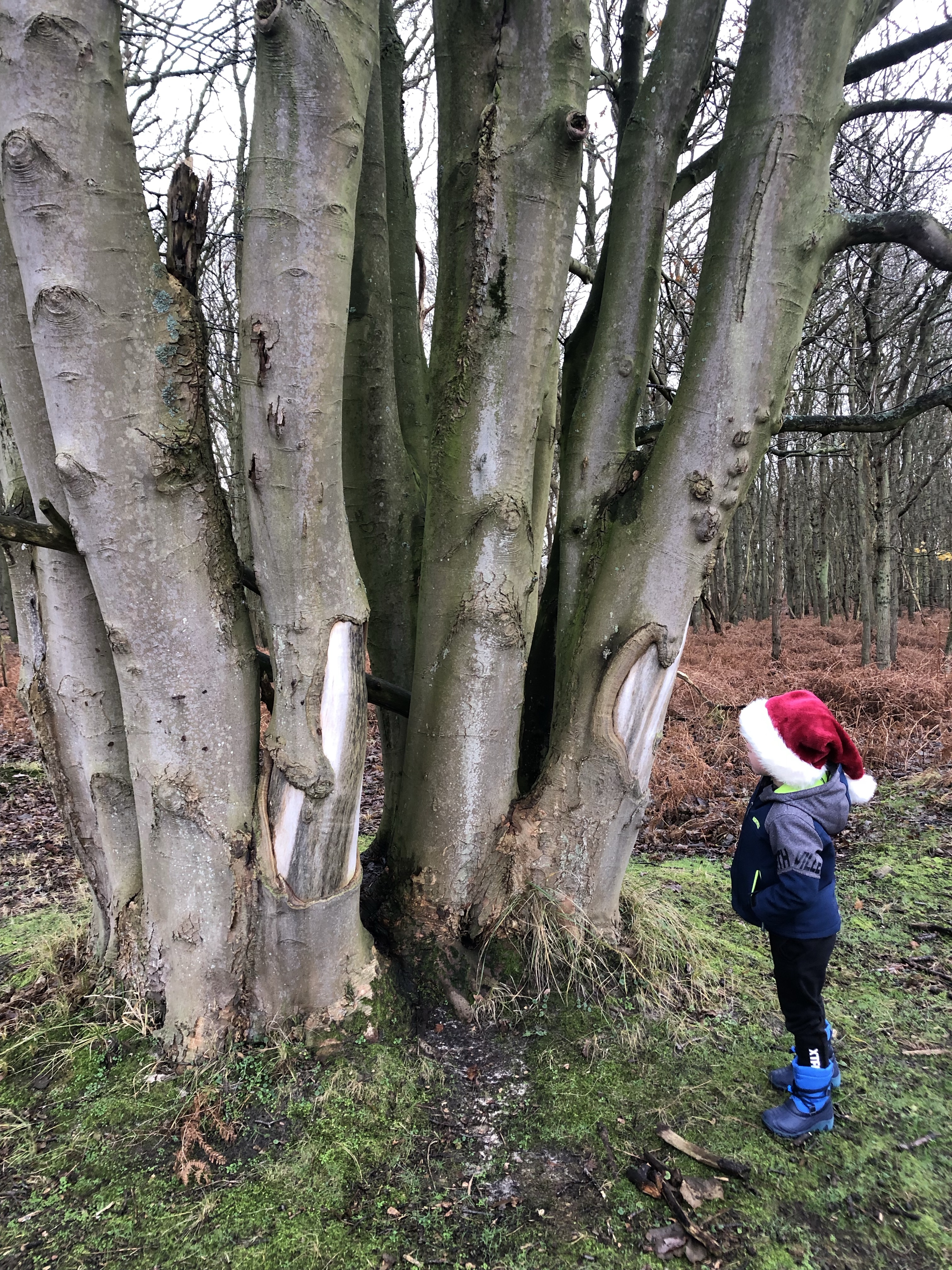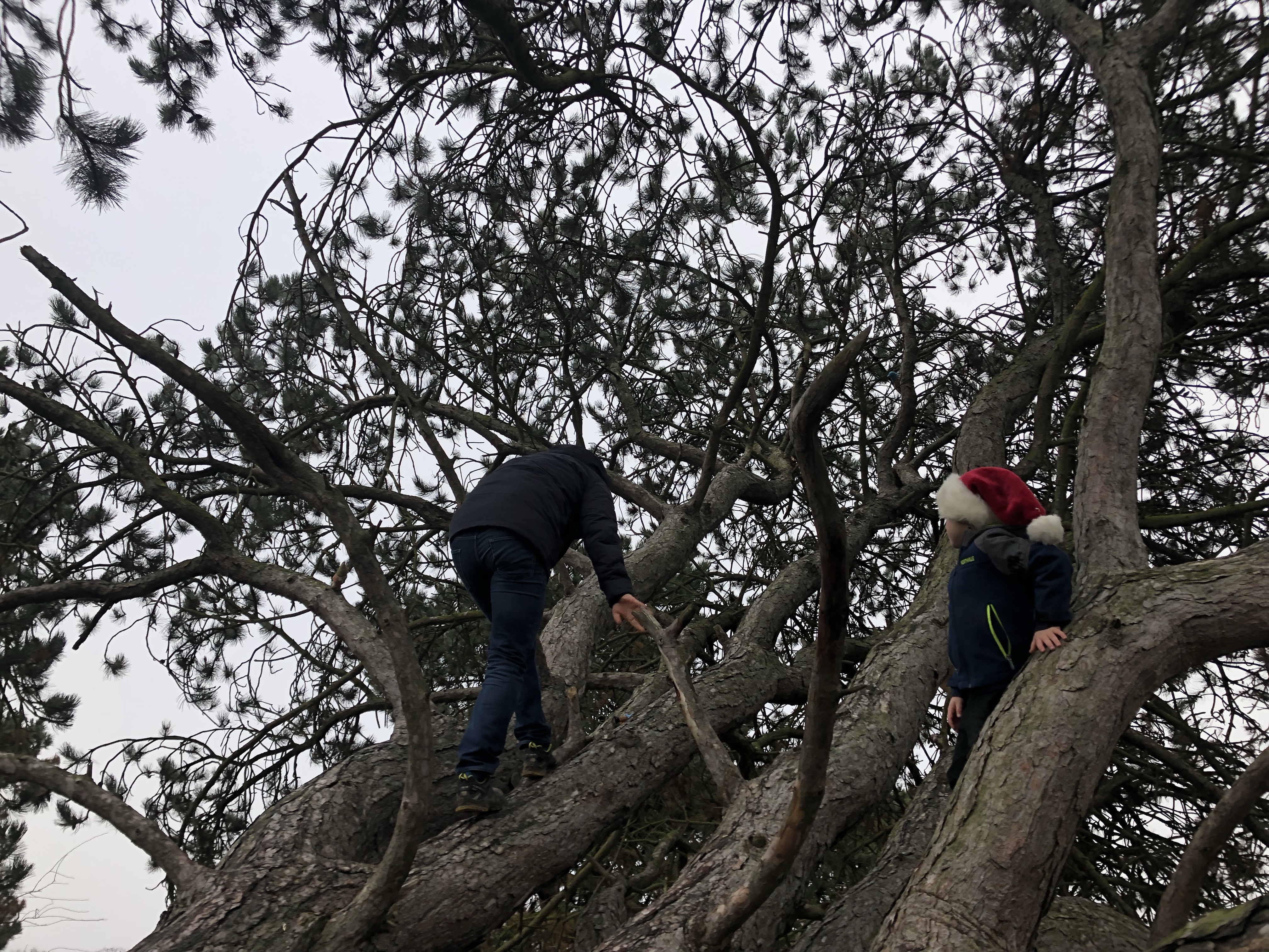 Een stuk verderop liep het pad bergafwaarts, waar we Mees gevaarlijk hard op zijn loopfietsje naar beneden zagen zwabberen, maar het liep gelukkig goed af. We staken een rivier over en klommen een berg omhoog. Er liep een stel met kinderen voor ons, die – zo hoorden we – ook onderweg waren naar het kabouterdorp. Balen, dat maakte onze expeditie en zoektocht natuurlijk een stuk minder spannend. Gelukkig spotten de jongens een stel oude bomen, een zwam en nog wat weinig spannende attributen. Een mooie kans om de reis wat te vertragen en onze mede-expeditieleden alvast een stuk vooruit te laten lopen, zodat wij alsnog onze eigen zoektocht konden vervolgen.