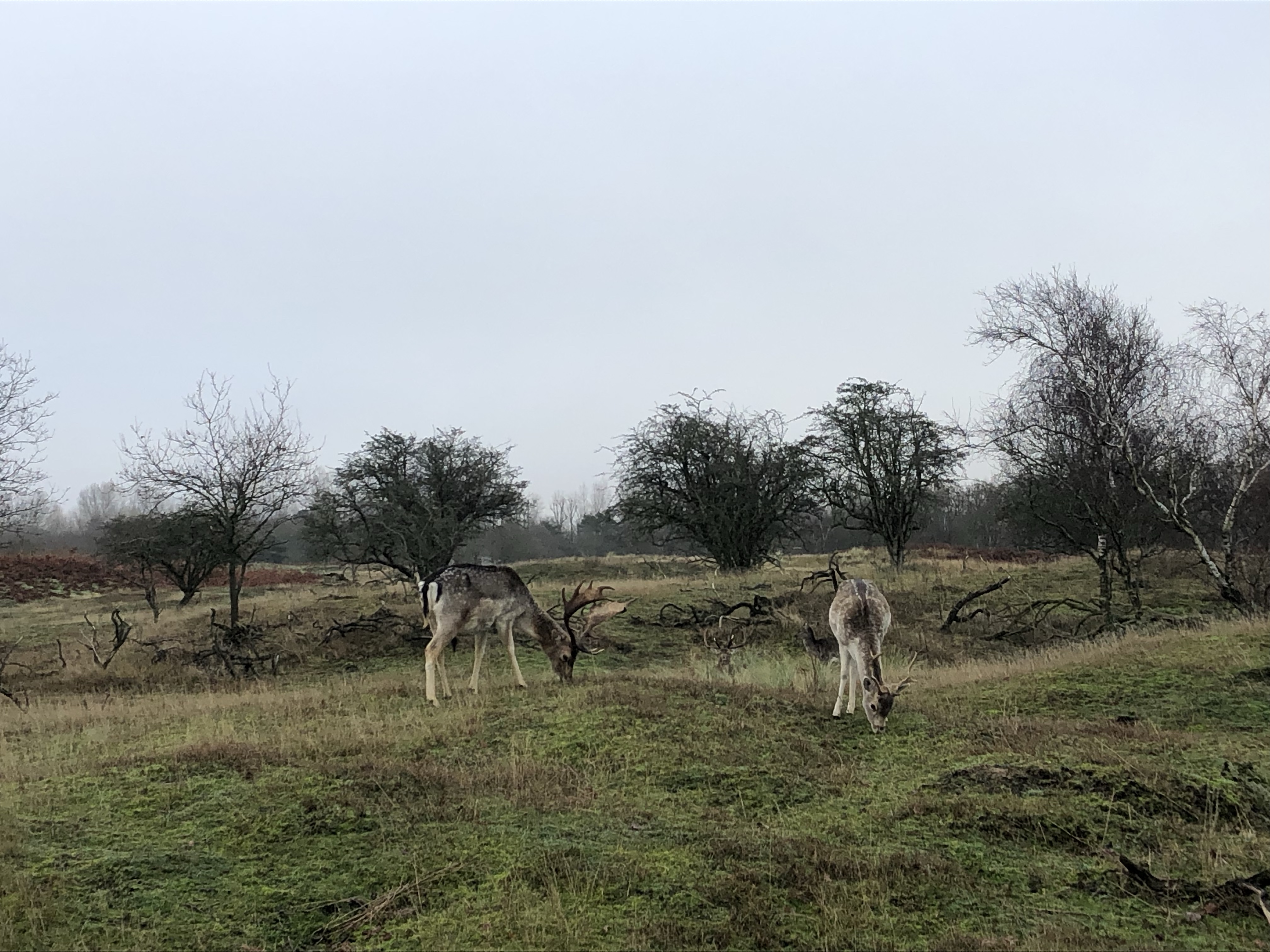 Het Kabouterdorp staat niet aangegeven, maar ik vond een omschrijving op internet. Daarnaast is het kabouterdorp zelfs ook op Google Maps te vinden, dus dat brengt je zeker op de juiste plek. We startten op een verhard pad en kwamen meteen al het eerste wild tegen: herten. Een passende start van deze expeditie. Die herten kwamen we overigens nog heel veel vaker tegen, waarbij we ons de vraag stelden wat het verschil is tussen een hert en een rendier.