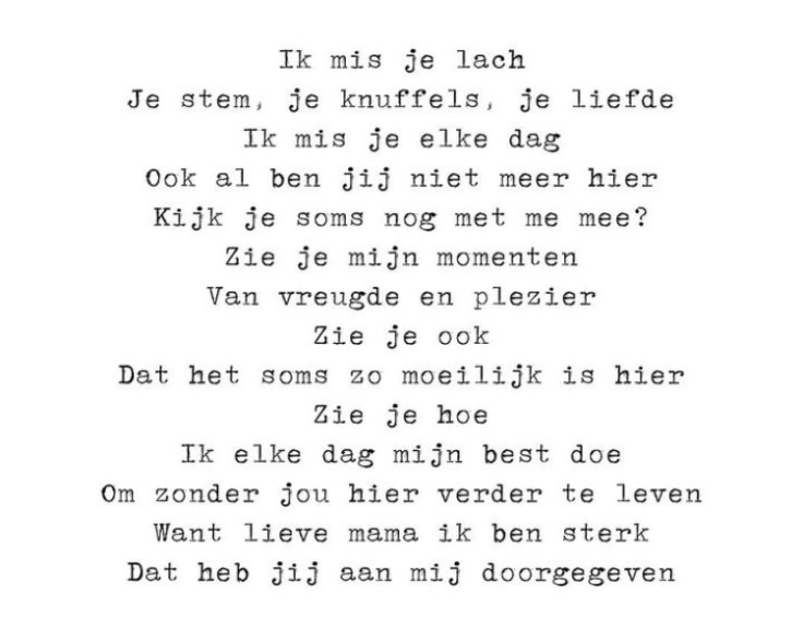 Naast verse koffie, is tijd voor mezelf wel het enige positieve op dit moment. Ik denk vooral aan mama en aan zuslief, die vandaag geen mamma voor haar kinderen meer kan zijn. Een neefje en nichtje die vandaag voor het eerst een Moederdag zonder moeder moeten vieren. Hoewel ik dankbaar ben voor onze jongens en dat wat ik nog wel heb, is er ook een groot gemis en wordt het gemis van mama en zuslief met de dag alleen maar groter. Want dat wat je hebt, wil je juist graag delen met de mensen om je heen.
