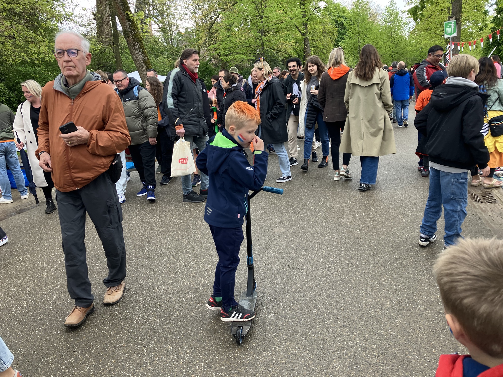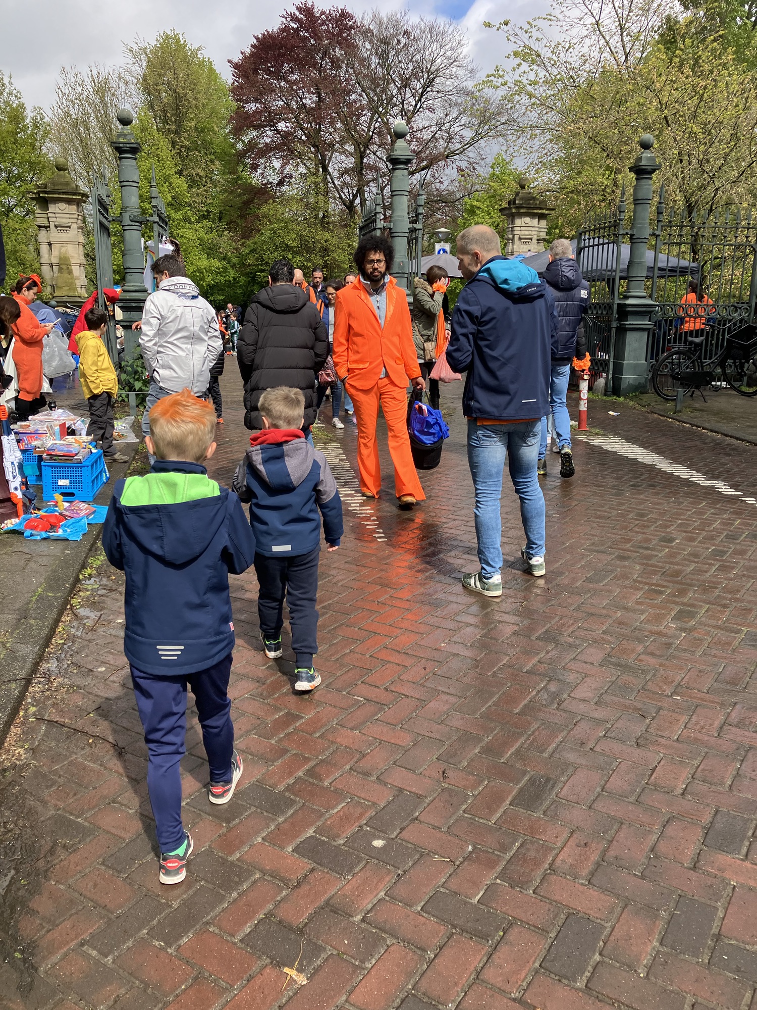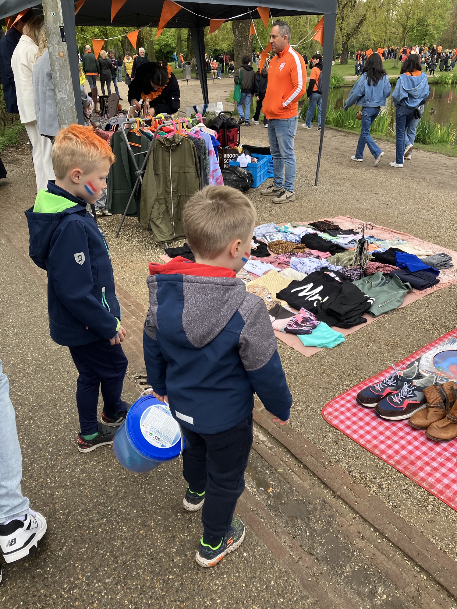 Dit jaar kregen de jongens ieder €15. Hoewel het thuis begon met een strijd wie welke Pikachu-portomonnee mocht gebruiken, verliep het verder gesmeerd. Ik waarschuwde de jongens dat ze het geld maar één keer konden uitgeven en als het geld op was, het ook echt op was. Maar ook dat ze misschien niet bij het eerste het beste kleedje al hun geld moesten uitgeven en beter eerst even rond konden kijken, maar er ook een kans was dat het speelgoed dan weg zou zijn als ze weer terugkwamen. Het was al snel duidelijk dat Mees nog steeds voor de Paw Patrol en transformeerbare autootjes ging en liep zo nu en dan resoluut op zijn doel af. Het ging me best aardig af om geen oordeel te hebben over de prullaria waar hij dolenthousiast over was. Ik weet inmiddels dat Mees nog lange tijd na deze Koningsdag dol enthousiast kan blijven over diezelfde prullaria. Het was wel even wennen dat het afdingen zo nu en dan in het Engels moest, het wordt een steeds internationaler gebeuren daar in Amsterdam, dat maakte het voor Mees soms best een beetje spannend.