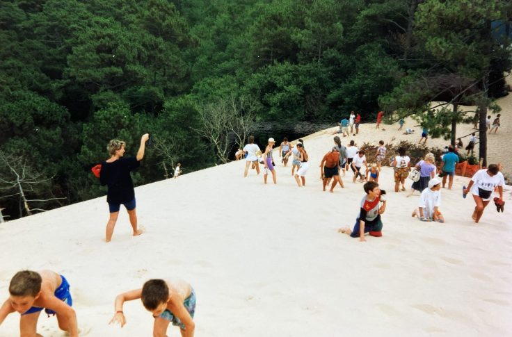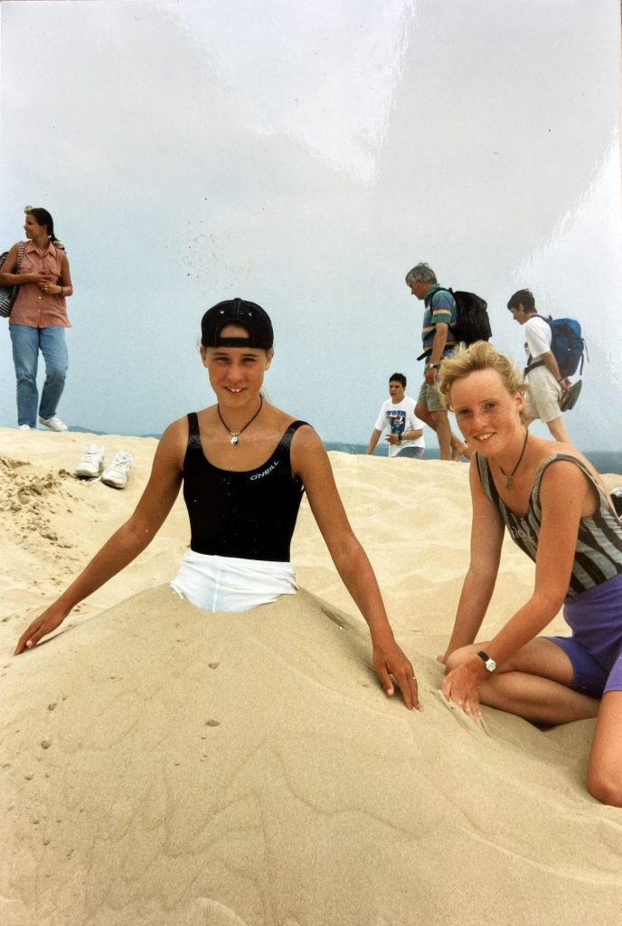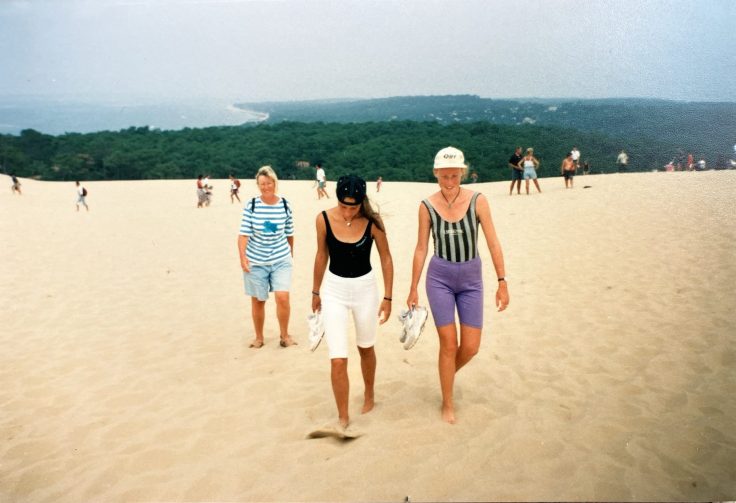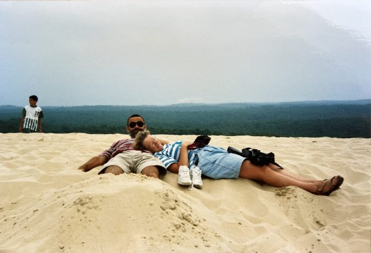 Nu weer hier toch zijn, probeer ik zo dicht mogelijk bij die herinneringen te komen. We fietsten naar Camping Le Tedey, de (volgens mijn moeder veel te dure) camping waar we 30 jaar geleden kampeerden. Behalve de naam en de ligging aan het meer, herken ik hier vooral veel niet. We gingen naar de Dune du Pilat, de hoogste zandduin van Europa, waar ik mijn kids hetzelfde plezier gun als mijn ouders mij en mijn zus destijds. Ik zocht naar de herkenning uit de foto’s van toen en groef diep in mijn geheugen of de herinneringen van de foto’s misschien ook échte herinneringen zijn.