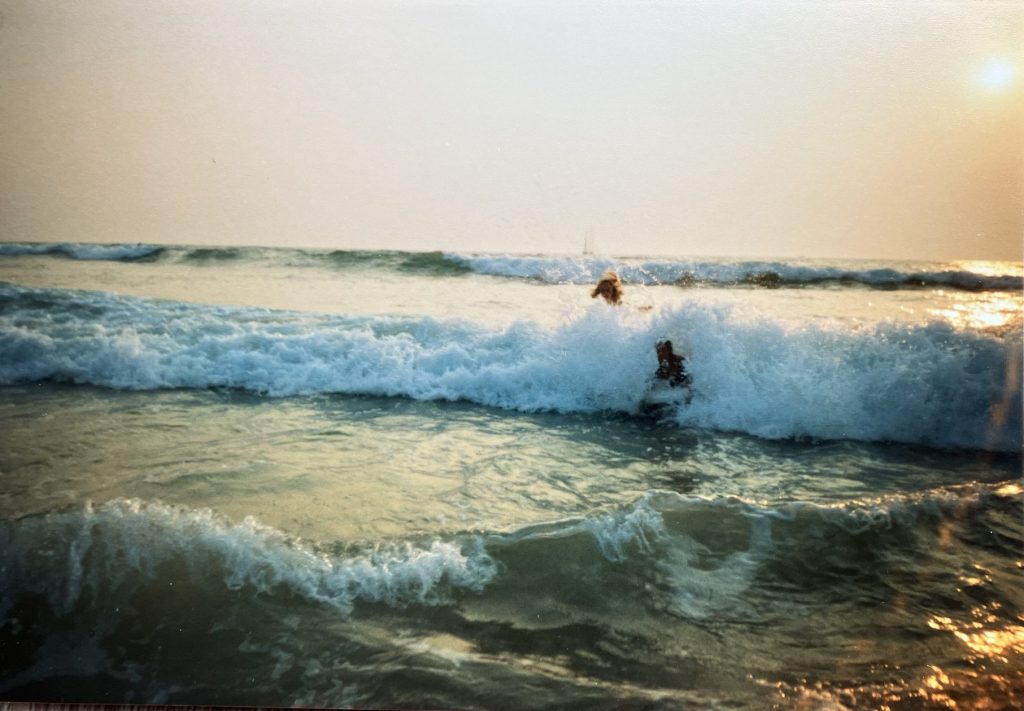 Terug in Lacanau Océan geniet ik van de geur van de naaldbomen, zoek ik de strandopgang van toen, deel ik mijn herinneringen aan het bodyboarden in de hoge golven met mijn eigen kids, zandkastelen bouwen en het grote verschil tussen eb en vloed.